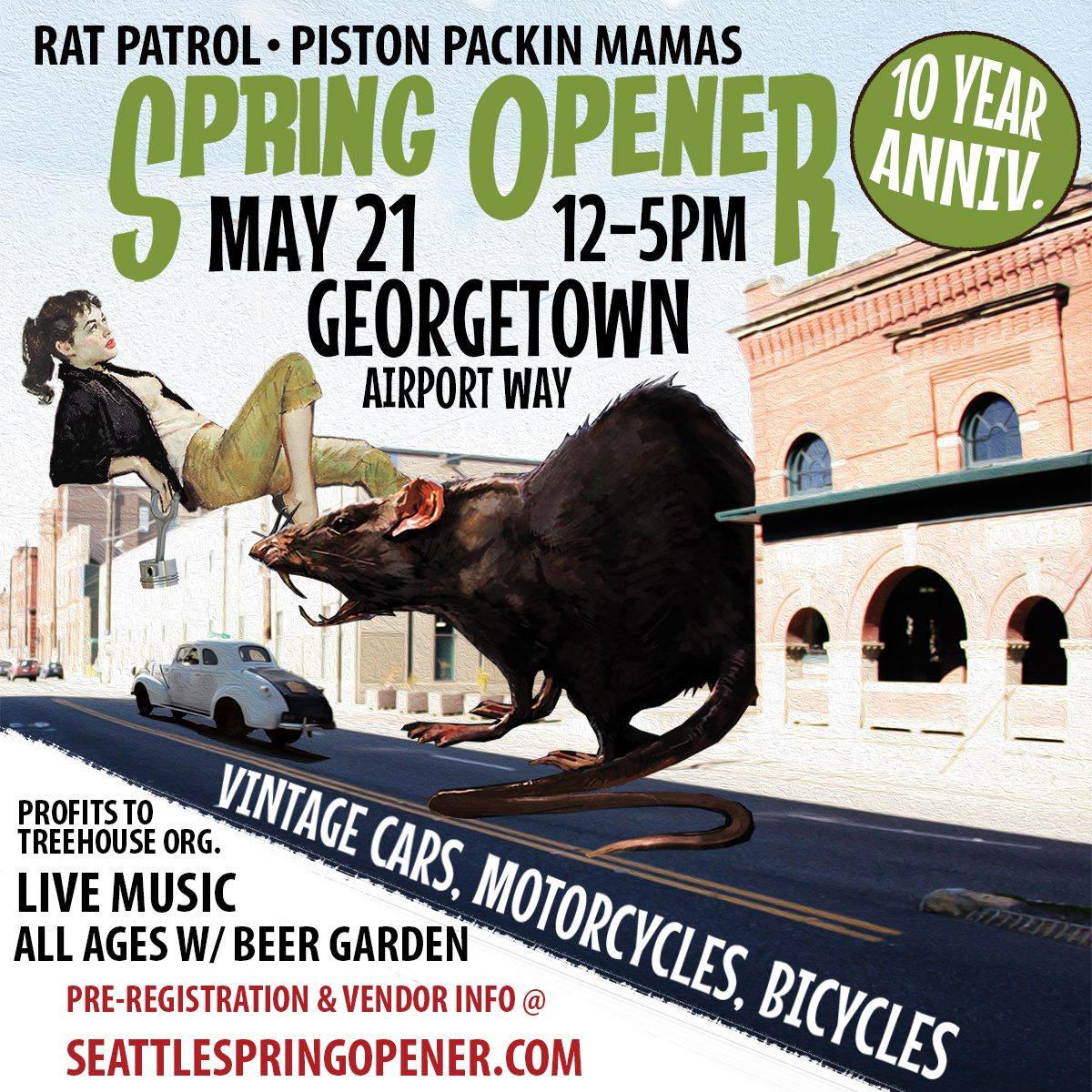 The 10th annual Seattle Spring Opener Car & Bike Show is Sunday May 21st! Present by Rat Patrol and Piston Packin’ Mamas, the show is a fundraiser for Treehouse.